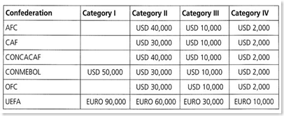 不過Training costs基本上不必計算,由於各個地區、各個球會投入青訓的資源及費用皆不相同,為了方便計算培養補償金,FIFA將綜合各種因素而規定各級別訓練費用之標準,各國足協則受命必須依照球會投資於青訓的資源及訓練的水準等因素將所轄球會分級(category),最多可分為四級。至於各級訓練費用的標準及各足協之分級結果會每一年進行檢討並公布在FIFA的網站上。