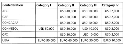 不過Training costs基本上不必計算,由於各個地區、各個球會投入青訓的資源及費用皆不相同,為了方便計算培養補償金,FIFA將綜合各種因素而規定各級別訓練費用之標準,各國足協則受命必須依照球會投資於青訓的資源及訓練的水準等因素將所轄球會分級(category),最多可分為四級。至於各級訓練費用的標準及各足協之分級結果會每一年進行檢討並公布在FIFA的網站上。